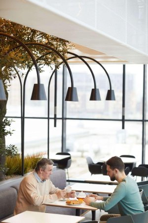 Upon entering the room, one is immediately astounded by the intricate and professional design of the restaurant’s ceiling. Aesthetics have been carefully considered in this space where patrons can enjoy their meals, drinks, and conversations.